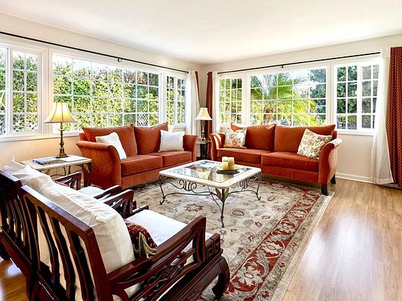 Enjoy this updated, clean, and peaceful single-level home in the quiet area of Southeast Pasadena. The home is about 2/3 furnished, including the kitchen, providing just about everything you need (dishes, cups and glasses, cookware, flatware, and a few small appliances, utensils, and more!). Enter the home with its open floor plan, featuring a fully furnished living room and a formal dining area that includes an eight-chair table and a China hutch. Matching drapery in all windows of this living room and dining area. The Kitchen boasts ample cherry wood cabinets and pull-out drawers, accented by quartz countertops and decorative stone backsplash. Matching LG stainless steel appliances include a four-door refrigerator, five-burner convection oven, dishwasher, microwave, and rangehood. The rear family room features a sliding glass door that leads out to a patio, an additional door to the driveway, a gas fireplace, and more. The master suite (furnished) with a 3/4 bath has a remodeled walk-in shower and a small walk-in closet with wood organizers. Central Air and Heat. The hallway has built-in linen storage. Bedroom #2 comes with a full-size bed, carpet, and a walk-in closet. The updated hallway bathroom has a shower over the bathtub and a pedestal sink. The third bedroom is at the rear of the hallway, providing additional privacy, carpet, mirrored closet doors, and is adjacent to the hallway bathroom. There is a large separate laundry room off the hallway with a folding counter, a soak sink, and a matching full-size side-by-side GE washer and dryer, and much more. The rear garage has been drywalled and converted into an exercise room, home office, storage, or whatever you desire it to be. There are two patios, a rear patio off the family room and a side patio off the laundry area. Ample tandem driveway parking for up to four cars.Ideally situated near various amenities, including an array of stores and restaurants in the East Pasadena business district. It is conveniently located near Pasadena City College, Cal Tech, Huntington Library, Old Towne Pasadena, the Rose Bowl, freeways, and Metro transportation stations.