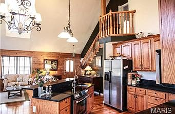 Truly an amazing home, you will feel like you are on vacation all year long. Eco friendly log home with insulated 12 inch inside walls! Approximately 5 acres in a private subdivision. Large deep covered front porch to sit and relax. Gleaming hardwood floors, updated oak kitchen with black granite counter tops, open concept plan with cathedral ceilings & soaring stone fireplace with hand hewn 1800's mantle. Two bedrooms on main level, one with walk in closet. Deck off the kitchen for entertaining and grilling, stairs to backyard and enclosed pool area with deck! Main floor laundry with door to deck. Upstairs separate master bedroom and bath with double sinks, garden tub and shower. Master bedroom entrance overlooks great room. Basement partially finished with full bath and room for an office or possibly a bedroom. Double garage has sink and water fountain. Instant hot water! Dual heating system, so that wood can also be used.