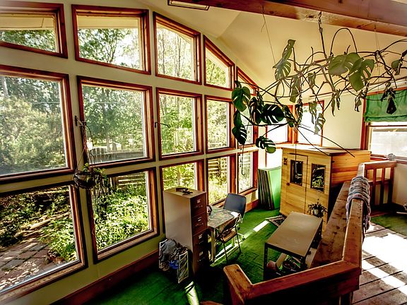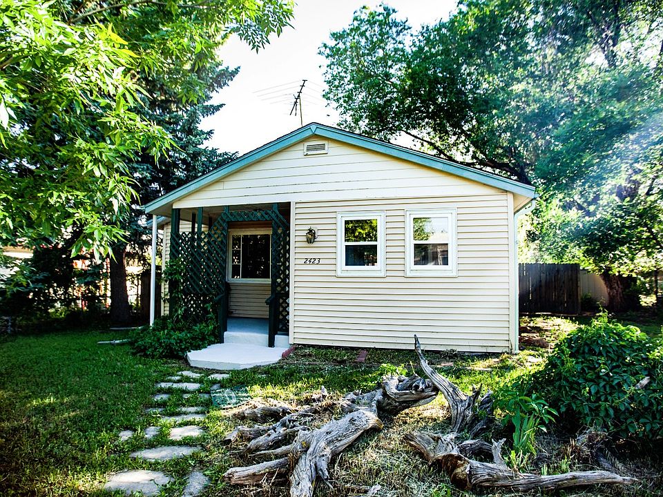 Charming home in Old Colorado City on a double lot with alley access and lots of room for alley parking. 2 beds up and 2 down. Old porch has been converted to a wonderful Solarium with raised roof, southern exposure and 20 windows. Perfect sunroom or greenhouse. Log cabin charm with wood beam ceilings and an updated roof and furnace. Wood floors, some newer windows, freestanding fireplace with brick floor and ceramic backing. Cozy kitchen with an island and custom cabinets. marketing sq footage is from previous appraisal and includes solarium