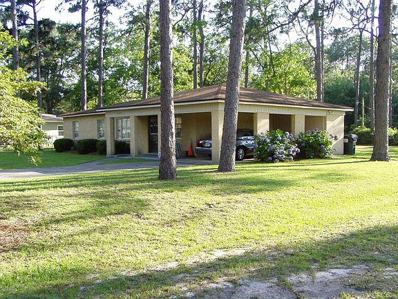 CONCRETE BLOCK W/STUCCO,3BR/1.5BA,2 LIVING & DINING AREAS. 1+ ACRES W/2 OUTBUILDINGS(red one 18x10,metal one 32x26)W/POWER. SINGLE CAR CARPORT & UTILITY ROOM. ESTABLISHED NEIGHBORHOOD YET NEW HOMES BEING BUILT IN THE AREA.BEAUTIFULLY LANDSCAPED;BLUEBERRY BUSHES,PEAR TREES,SCUPPERNONGS,HYDRANGEAS.