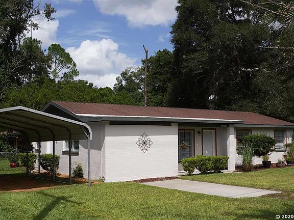 Looking for a delightful & charming home in the heart of High Springs with lots of natural lighting? This 3 bedroom 2 bath home that sits on a corner lot of .45 acres, almost half an acre, is it! As you walk in the home you will admire the bright & spacious living area with a beautiful arch entrance into the big living room with built in shelves. The kitchen & breakfast nook are spacious with a stainless steel refrigerator, a newer microwave, a pantry, a new sliding door & additional storage space. The home has newer tiled floors throughout, has been freshly painted inside & outside, has updated fans & fixtures, has new entry & side doors, & the master bathroom has been tiled & updated. The inside laundry room has additional storage space. This corner lot has a fantastic backyard with lots of space & is completely fenced for children and pets, or you can expand the backyard to make it even bigger. There is a shed in the backyard for additional storage, a pole barn for covered space, & a 2-car carport. This home has a newer drain field (4/2017), newer water heater (4/2016), newer AC unit (6/2015) & roof was replaced in 2012. This home is walking distance to downtown High Springs for enjoying all of it's great restaurants & stores!
