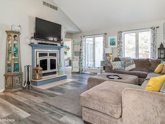 This Channahon 4 bedroom ranch home is situated on a mature lot in a stellar location! Recently updated and meticulously maintained. Upon entering be greeted by the spacious vaulted living room with wood burning fireplace. The den/office with french doors is right off the homes entry and could be used as an additional bedroom. Peninsula style eat in kitchen with granite countertops and breakfast bar opens up to the bright and airy sunroom. All appliances remain! Primary bedroom with tray ceilings, walk in closet and ensuite bath. Vanity separate from main bathroom space. All bedrooms are generously sized. Expansive finished basement with bar and pool table included, designed for entertaining! 2 bedrooms are located in the finished basement with egress windows. Large laundry room with tons of storage, washer and dryer included. Sprawling backyard great for hosting features a deck, mature trees, fire pit with custom surround and shed for extra outdoor storage. Centrally located to all area entertainment and amenities with easy interstate access to I55 and I80. Quick walk to Bluff Park and close to Heritage Bluffs Golf Course. Noteworthy features: newer Andersen windows, updated luxury vinyl flooring, updated light fixtures and fans, fresh paint, whole house fan, updated doors, new water heater, newer roof, humidifier, gas heater in garage.