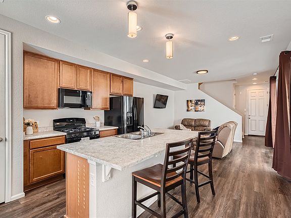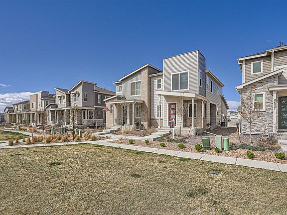 Welcome to this modern, casual, and inviting home! This charming property boasts 3 bedrooms, 3 bathrooms, and a generous 1545 square feet of living space. Situated on a desirable corner lot, this home features high ceilings, luxury vinyl planking on the main living space and plush carpet in the bedrooms, and a spacious kitchen with an island and pantry. The primary bedroom includes a walk-in closet and an en-suite bathroom. Enjoy the convenience of central AC, a private outdoor space, and an attached garage. Experience the benefit of Solar Panels and save on your Utilities. Enjoy the beautiful landscaping around the walking path with a morning cup of coffee. With close access to DIA and quick access to the highways, this home offers a prime location for travel. Don't miss out on the opportunity to make this your new haven. Schedule a tour today!