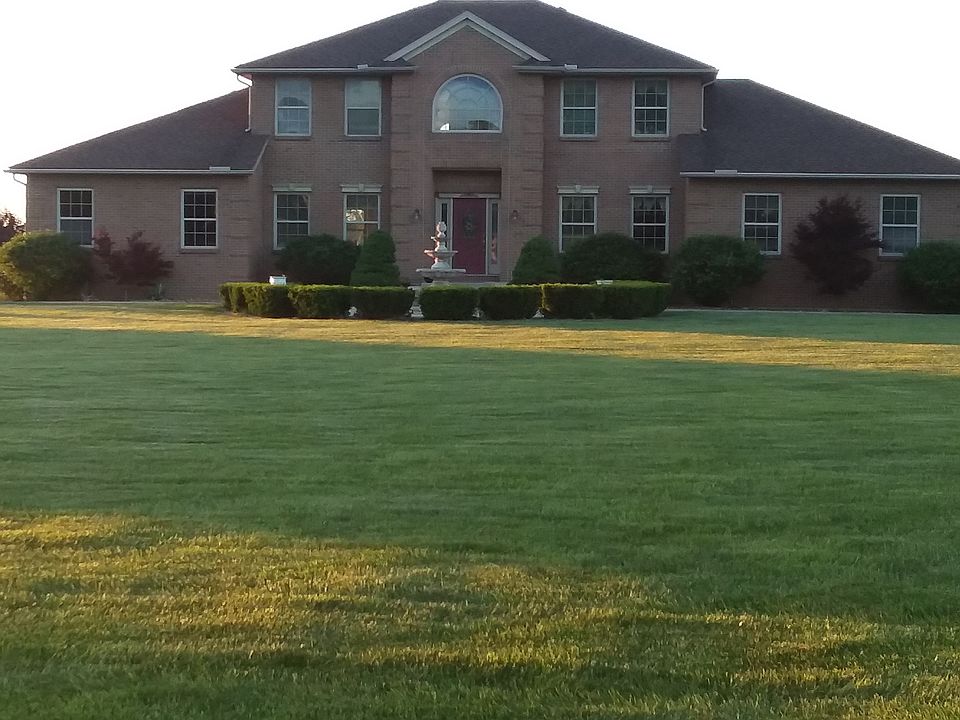 Beautiful brick home for sale with 1/3 acre pond with beach.Beautiful bricked patio, 40x60 pole barn with siding &brick.