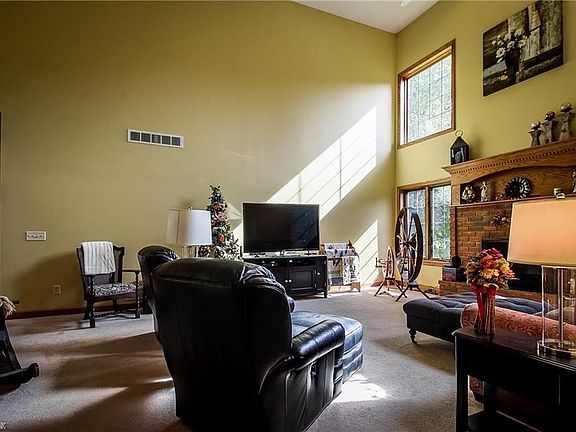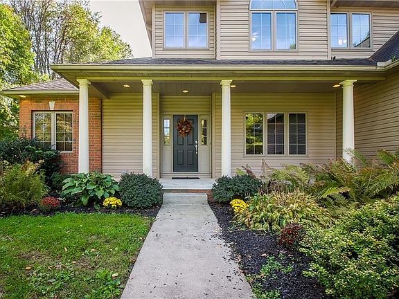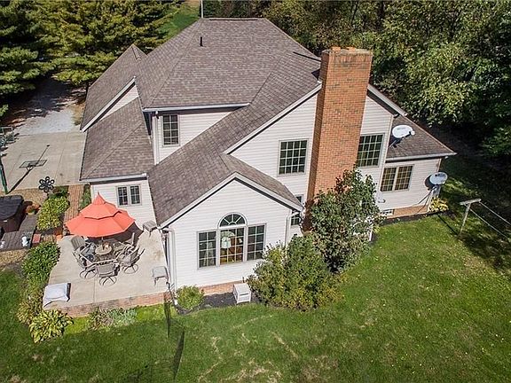 Amazing custom built, one owner home nestled on 7.679 AC. Charming and spacious custom kitchen boasts Alpine custom oak cabinets, stainless appliances, breakfast bar & tile back splash. Stunning formal dining room features 3/4" solid Hickory floors and beautiful crown molding. Gorgeous great room flaunts 18' ceiling, brick fireplace, and magnificent open oak staircase leading to 3 BD & bath on 2nd level. Bright & cheery sun room w/vaulted ceiling. First floor laundry, 6 panel doors, wide trim & crown molding throughout as well as high ceilings plus 13 course basement - easy to finish & plumbed for bathroom. Enjoy leisurely walks on the trails through your own "enchanted forest" aka lovely wooded acreage. Lovely private patio in the recently fenced-in back yard.