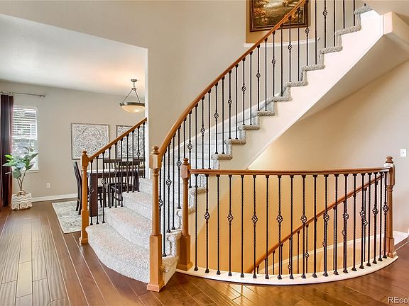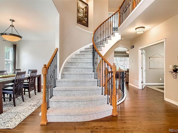 Welcome to this well-kept 5 bedroom, 4 bath Cardell home in Tallyn's Reach! Upon entry, you are immediately welcomed by a beautiful, curved staircase focal point which leads to the spacious upstairs, including the master bedroom retreat w/ built-in entertainment and storage center, a 5-piece en-suite bath & walk-in closet, plus 3 additional bedrooms & another full bathroom. This home has many exceptional details including sandalwood maple cabinets, stainless appliances, a spacious pantry, an island with a breakfast bar plus a convenient home work station. The family room TV & elegant enclosure are included. The dining area, main floor study with double french doors and laundry w/ included washer & dryer complete the main-floor living area. Venture downstairs to the finished basement with a spacious 5th bedroom, a 3/4 bath w/ double sinks and a large shower. Enjoy watching the big game or movie nights at home w/ the included Yamaha projector & screen in the media area. You won't even have to leave the basement for snacks with the built-in bar with beverage refrigerator and microwave! There is also plenty of extra room behind the media area for games, exercise equipment, a pool table, etc! Also enjoy the beautiful, private outdoor setting with mature & low maintenance professional landscaped fenced backyard. The lot offrs grassy areas, a patio as well as a beautiful terraced area that just feels like Colorado! This home has been beautifully maintained & is move-in ready with brand new upstairs carpet & two newer 50-gallon water heaters & more!