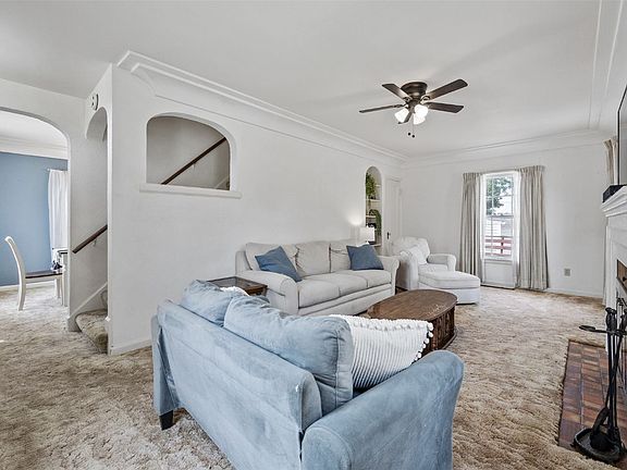 Besides style and charm, this 972 sq ft traditional home offers designer ceilings, hardwood flooring, wood burning fireplace, built in shelves and niches. Formal and casual living spaces including a drop zone conveniently located off the kitchen, attractive curb appeal with a front porch with iron railing, second floor dormers, 492' sq ft garage with built in storage and updated vinyl siding, deck with bench seating and stairs to deep rear yard. Updates include 2022 a/c approximate, 2021 water heater approximate. One year home warranty, pest control warranty included. Average monthly gas: $58, Average monthly electric: $127.