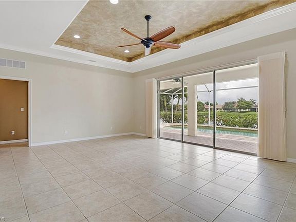 Welcome to Sandoval, Cape Coral's amenity filled, family friendly gated community! Outdoor living space starts with a screened front entry, while inside this lovely home boasts almost 2300 sq ft, with 3 beds & 2 baths. Kitchen has 42" cabinets, striking granite countertops & SS appliances that are wide open to the outdoor living area. Crown molding & tray ceilings are timeless & eye catching , while neutral tile throughout the main living area will go with any decor. Master suite features soaking tub & stand up shower with his & her sink. The other 2 bedrooms are of generous size. Light flows naturally in this open floor plan of the Brookfield, a DR Horton home. This single story southern exposed lakefront pool home will be a sunset delight while watching from the spacious pool deck, large enough for outdoor gatherings & entertaining. Extra wide driveway with an additional 6ft depth in the 2 car garage for those who like to work in the garage. Sandoval offers great amenities: Bocce ball, basketball, lagoon style pool, 2 dog parks, fishing in your backyard & the list goes on! All with low hoa dues, you can call this home! Short drive to great schools, beaches, shopping & dining.