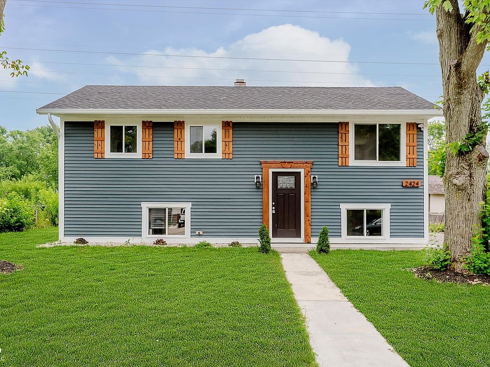 This delightful FULLY RENOVATED 4 bed, 2 bath single-family residence is nestled in the heart of Kokomo. The split-level floor plan offers 1,728 sq ft of comfortable living space. The main-level features a primary en suite and a generously sized living room. Cozy living and dining areas are located upstairs along with two additional bedrooms. There are two full baths (one on each level) for flexible household use. The eat-in kitchen boasts beautiful gray cabinetry, stainless steel appliances and vinyl plank flooring. Forced air heating and central air conditioning ensure year-round comfort. A convenient detached two-car garage, new vinyl siding, new roof, and new interior finishes from top to bottom make this low maintenance living for years to come. Situated on a generous 0.25-acre lot within the established Country Club Hills neighborhood.