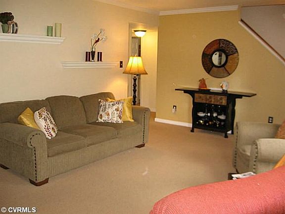 Opportunity knocks with great pricing on this low maintenance vinyl sided transitional home situated on a cul-de-sac in the heart of the West End. The foyer features ceramic tile flooring and opens to the great room with berber carpeting, crown molding and gas fireplace. The kitchen includes ceramic tile flooring, oak cabinetry, and vaulted dining area with skylights. The first floor bedroom offers a walk-in closet and crown molding. Upstairs there are three additional bedrooms - one is spacious enough for a 2nd master or bonus entertaining space - and a hall bath. New HVAC and water heater! The exterior includes detached and attached storage sheds. All appliances convey and the sellers are providing a one year warranty. Walk to shopping, dining, and the Y at John Rolfe. Must see!