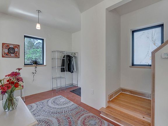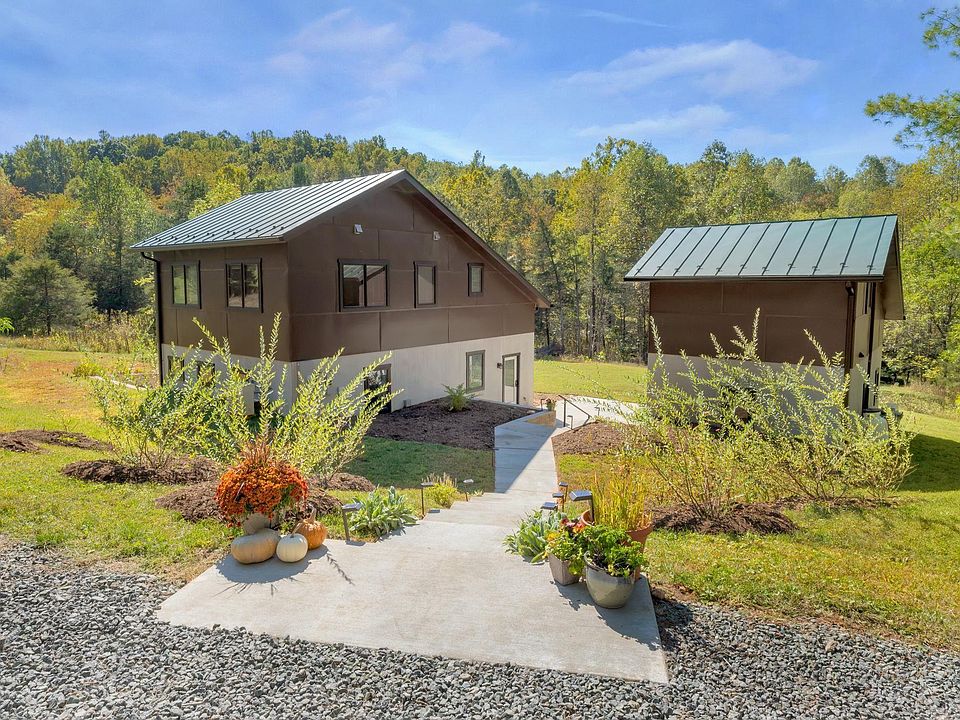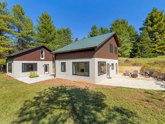 Nestled on a 2-acre lot minutes from Batesville, Crozet and Charlottesville this new contemporary home offers an abundance of natural light, comfort, and energy efficiency for many years of minimal maintenance and low utility costs. Colored metal roof and siding provide lasting protection with no need to paint. Large windows, heated floor, and tall ceilings create a spacious yet cozy inside environment. Simple natural design features include reclaimed red oak floors, tongue in groove pine ceiling, natural maple trim and kitchen cabinets with quartz countertops. Downstairs bath has built in maple sink cabinet and stone-tiled walk in shower with infrared heat lamp. Separate building is ready to be finished for office/studio/apartment with additional bedroom and full bath. There is also a shed for additional storage. A patio overlooking a private yard with wooded views is the perfect spot for nighttime star gazing sitting around a fire. Walk along the creek in the woods. Enjoy plantings of elderberry, blueberry, fig and willow.