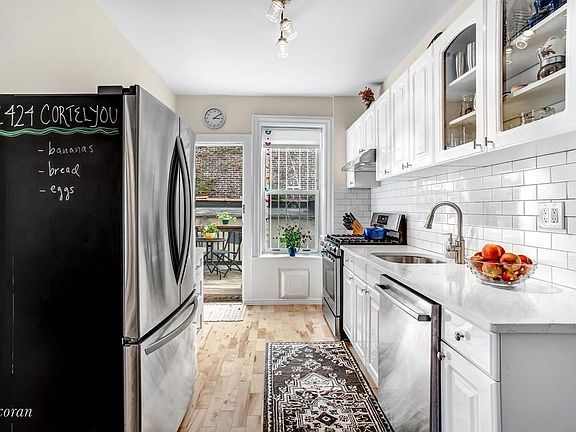 This stunning, super sunny single-family brick house with PRIVATE PARKING was just stylishly GUT-RENOVATED. Located in the best part of Flatbush, just a few blocks over the Ditmas Park and Lefferts Gardens borders, this semi-detached home is set on a large corner lot on an extremely quiet block. Not your average renovation, this unique home has 3 large bedrooms, 1.5 bathrooms (with the possibility to easily add more), a massive, gorgeous wide-open parlor level with high, beamed ceilings and a DECK. Gleaming brand new maple hardwood floors make the space light and bright. The home’s many windows, including bay windows, allow sunlight to pour in all day from 3 sides. The large living room has a charming, decorative antique gas fireplace and the dining room is absolutely massive. Off the dining room is an area suitable for a pantry or a home office. The kitchen has quartz counters and all new stainless steel appliances, including a Bosch 800 dishwasher, LG French door refrigerator, Frigidaire Gallery convection oven with center grill, and a high-powered range hood. Off the kitchen is a sweet back deck, which leads to the yard and garage. Sunlight floods the staircase up to the second floor of the house, courtesy of a brand new skylight. The bedrooms are grand, and each has wonderful closet space, including double-hung closets in the master. Both of this home’s bathrooms are sleek, clean renovations with lovely touches. There is a stacked, full-size washer and vented gas dryer in the half bathroom. The basement has full-height ceilings and has been primed for conversion into a recreation room or home office, and currently provides excellent storage. The yard is enclosed by a new fence, and has both grassy areas and paved areas with planting beds providing ample space for a variety of outdoor activities. Last but not least, the house has a detached one-car garage, ensuring you’ll always have a space to calmly land before you enter into your big, beautiful new home. Moments away from the excellent restaurants and stores on Cortelyou Road in Ditmas Park, and just 2 blocks to handy shops like Stop & Shop, Old Navy, Sears, Kmart. Trains: B/Q at Cortelyou Rd. and the 2/5 at Beverly Rd. Be in touch anytime for an appointment, or visit an open house! Broker/owner.