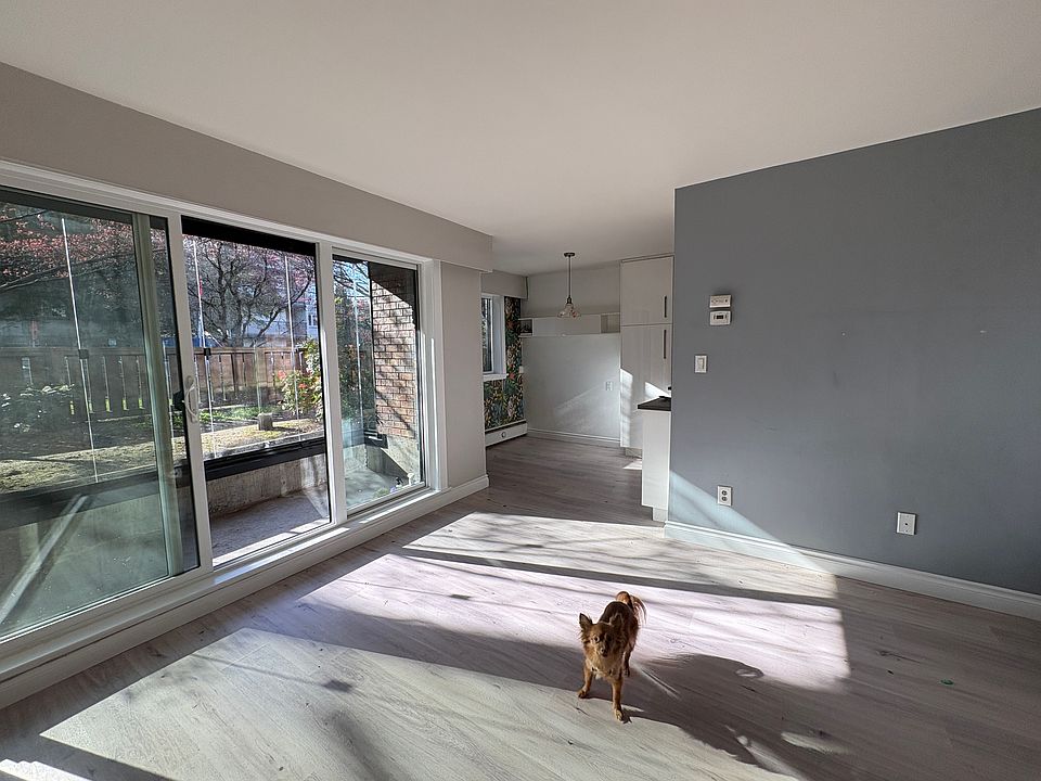 Discover this bright and spacious 837 sq. ft. 1-bedroom corner unit in the heart of Kitsilano. With a direct access via the garden, this home is ideal for pet owners and those who love a connection to nature. Key features include: Utilities: Gas heating, Water, BC Hydro, Chimney. Fiber internet is also pre-installed with Telus (about 500-750 mb/s) Appliances: Fridge, microwave, oven stove top, dishwasher, Ceiling fan, LED strips & mosquito screens on large windows and a 65" LG wall-mounted smart TV. Southwest Exposure: sun enters in the morning and afternoon. Pets allowed: 1 large pet or 2 small pets allowed, no extra fees. Building Amenities: Laundry facility, bike storage, landscaped garden. Underground EV-ready Parking Stall. Unlimited Level 3 charging at no extra cost. Recent Upgrades: Brand-new building envelope and double-layered windows for comfort. Prime Location: Just 5 minutes from the upcoming Arbutus SkyTrain station, with easy access to transit, cafes and shopping on Broadway and 4th. Rent: $3,200 including utilities Term: 1-3 years, negotiable Available: May 1st 2025 Requirements: - Proof of income - Renter's insurance - Reference(s) from a previous landlord - Deposit (1.5-2.5k according to pets) Interested? Message now to book a viewing! More photographs will be posted once it has been fully cleaned. Owner pays for all utilities except for Internet. Renter can go with Telus for a fast fiber internet which is already pre-installed, or go with a different provider. For pets, the strata allows for each unit to have 2 small pets like a cat and a small dog, or 1 large pet like a large dog. Deposit will be 1.5k if the renter doesn't have a pet, 2k if it's a small pet, or 3k if it is a large pet or two pets. Upon signing the BC Tenancy documents, the renters will be asked to provide: - Proof of income - Renter's insurance - Reference(s) from a previous landlord - Deposit (1.5-2.5k according to pets)