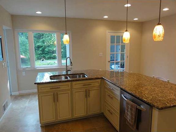 This spectacular remodeled home was increased in sq footage & upgraded to the "nines"! $30,000 custom kitchen features granite solid surfaces, an expansive island w/snack bar seating, custom lighting. SS appls, & a pantry. French drs from DR open to lite & brite sunroom. New roof, siding, windows, furnace, A/C & gutters. New updated bathrms. Stunning chocolate hdwd floors. Every inch is perfect!!
