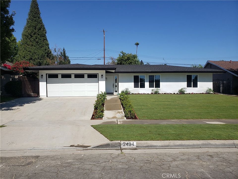Home sweet home!! Fully remodeled and upgraded Modern Farmhouse stunner with smooth stucco finishes! Come see this newly completed 4-bedroom 2 bath amazing home with over 2600 sqft of open living space. Walk through the front door and see the oversized great room with waterproof flooring, custom paint, recessed lighting and warm fireplace for your enjoyment. The extra-large sliding glass doors makes it perfect for indoor/outdoor entertaining. The custom kitchen comes with white shaker cabinets with custom hardware and quartz countertops. There is also a custom quartz waterfall island with dark mocha cabinets for additional storage. The appliances are all stainless-steel which include large standalone 36-inch oven/range, custom wall mount range hood, 36-inch counter depth French door refrigerator, dishwasher and 24-inch built-in microwave drawer. There is a large Master Bedroom quite with access to backyard. The master has his and hers closets, custom finished bath with shaker cabinets, quartz countertop and custom shower enclosure. Some of the other mazing features are a new HVAC system, new roof, new electrical panel, new windows, new garage door, new doors and casings, new baseboards and so much more. The open floorplan allows for easy reconfiguration and possibly adding an additional bedroom. Great potential for rental, elderly care or AirBNB. The large easy to maintain backyard is ready for your entertaining, as well as your fruits/vegetables or maybe a vineyard? There is a custom-built storage unit as well. The front landscaping has new sod, flowers, plants and irrigation system for you to enjoy. The neighborhood enjoys an award-winning school system and Cal State Fullerton is close by. The home is also close to great restaurants, golf courses and shopping for you to explore. This is the home you have been waiting for and it will not last. Do not miss out on this dream home! No HOA and low taxes too!