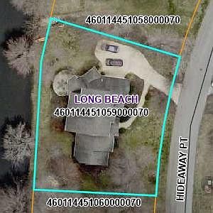Make this your forever home. This custom-built home is sited on a landscaped waterfront lot on Lake Clare in Long Beach. The home exhibits quality in construction, with your main floor that featuring a primary suite with lake view office adjoining, ensuite bath, plus his and her walk-in closets. The window wall in the vaulted living room brings sun and water views inside. The kitchen opens to the morning room and brick patio overlooking Lake Clare. Storage includes the heated garage and unique golf cart room with custom cabinets. The formal dining room has a tray ceiliing, next to the living room with custom cabinetry and bookcases. Built of brick with comfort and utility in mind, Hideaway features efficient main floor living. You will appreciate thoughtfully separated work, reading and relaxing areas. Upstairs you have spacious bedrooms, a rec room, and jack n jill bath with steam shower. The dock for paddled vessels and sunbathing remains. Come cruise Lake Clare and chill.