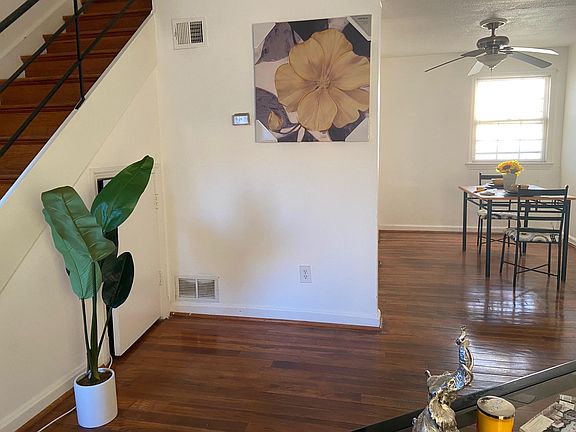 Two Level - Two Bedroom Townhouse Natural hardwood floors throughout First floor features separate living room, dining room and galley kitchen Second floor features full bath, master bedroom with large closet and second bedroom Central air cooling and natural gas heating and cooking Washer / Dryer hook up Private parking Convenient to METRO and walking distance to shopping and dining Water utility included. Tenants pays gas and electric. Application Fee $30 Last two (2) pay stubs Copy of driver's license or government issued ID Credit report