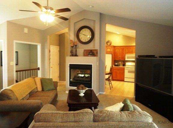 Many unique features in this custom built home. Double sided gas fireplace for your enjoyment from either kitchen or living room, vaulted ceiling in living room & kitchen, unique open bannister to lower level. Split bedroom floor plan: Private master bedroom has coffered ceiling, walk in closet, built in storage & double vanity in bath. Lower level finished by Dave Vaughn has gigantic family room down with gas fireplace, computer area, full bath with granite countertops, office currently being used as 4th bedroom but no window. Almost new roof (fall 2013), lots of new lighting, level driveway, level street, private partially covered deck overlooks level backyard & wet weather creek. Shows very well and won't last long!