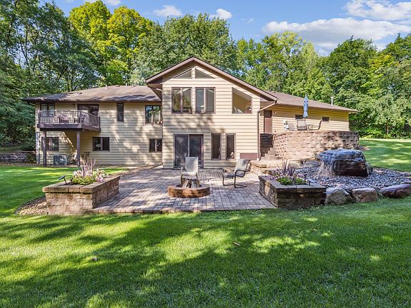 Discover serenity in this stunning executive-style rambler nestled on over 1 acre of lush landscape. Feel right at home in the expansive kitchen boasting ample cabinets, while the lovely dining area sets the stage for memorable gatherings. Bask in natural light in sunrooms on both levels, leading to paver patios and a cozy firepit in the private backyard. Retreat to the oversized owner's suite with a lavish private bath and walk-in closet and sip on your morning coffee on the maintenance free deck that walks out from the bedroom. A walk-out lower level with 2 bedrooms, and abundant entertainment space and plenty of storage complete this inviting abode. Welcome home to luxury living!