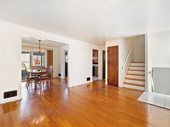 This is a two story brick home featuring three bedrooms and one and a half bathrooms. The first floor includes a living room, dining room and a powder room. The property has both an integral garage suitable for one car and an additional two car detached garage. The kitchen is equipped with a refrigerator and gas stove. Patio doors lead from the dining room to the covered back porch. The home boasts hardwood floors but is being sold "As Is" and requires some work to bring it up to its full potential.