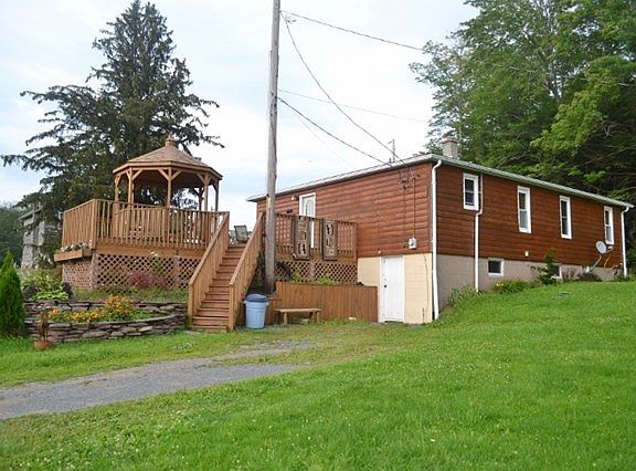 With log siding inside and out, this 3 bed/1 bath stick built Ranch has all the appeal of a true log home. Large kitchen/dining combo with center island, propane fireplace in living room, beautiful wood floors in bedrooms, walk-in closet in bathroom, full basement, open deck with gazebo, and generator hookup installed. Situated on 7+ acres with stocked pond, apple trees, walnut trees, and concord grape vines this property is sure to attract the wildlife. 26x44 detached garage has a concrete floor, outside water, electric, and it's own septic system. Short drive to SGL's &Worlds End State Park