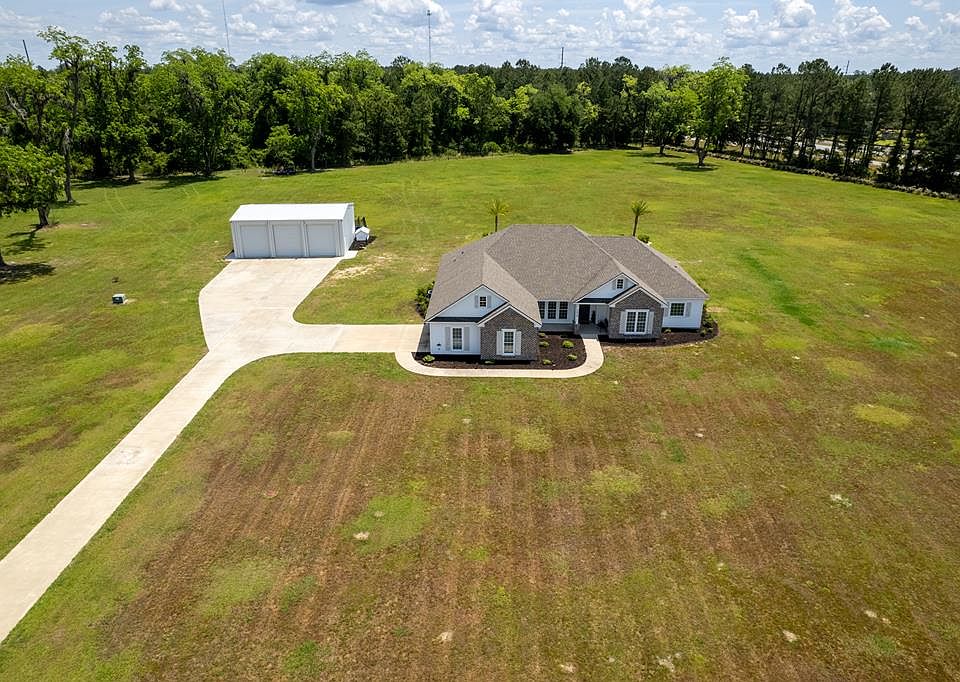 THIS BEAUTIFUL HOME HAS IT ALL !! ACREAGE (8.69AC), IN-GROUND PENTAIR SALT WATER SYSTEM POOL, 1200 FT SEPARATE WORKSHOP W/3 ROLL UP DOORS. & PRIVACY (NO COVENANTS). NEW PAINT both Inside and Outside. This SPACIOUS LIVING AREA Features NEW LVP Flooring ,TREY CEILING & Opens up to the FOYER & KITCHEN AREA. KITCHEN FEATURES (2) EAT-IN BAR AREAS, PANTRY, ELECTRIC STOVE,MICROWAVE,DISHWASHER ,DOUBLE SINK, GRANITE COUNTERTOPS & REFRIGERATOR. THE MASTER SUITE Features LVP FLOORING, (2) WALK-IN CLOSETS, DOUBLE VANITIES,JETTED TUB, LARGE WALK-IN TILE SHOWER, TILE FLOORING in Bath Area, & Separate DOOR to the POOL. The 4th BR has its own BA and could easily be a NICE OFFICE with LVP FLOORING ALSO. Home also includes 2 more BR's, Extra Office , BLUE TOOTH SPEAKERS ,Laundry Room ,Screen Porch, & BACK YARD PARADISE W/ POOL.PALM TREES, & SPACE GALORE!! WORKSHOP includes EXERCISE Room. CALL TODAY!!!!!!