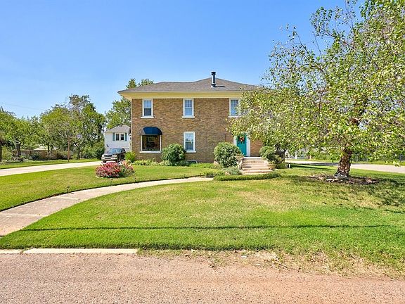 Take a step back in time when stately homes were built on grand lots in the middle of town. This beautiful historic home has been cared for by the same family for decades. It's historic, yet modern updates and artsy decor make it a home that everyone falls in love with. First, you will fall in love with the curb appeal of the winding sidewalk thru garden areas to the front door. Inside all of the spaces are warm and inviting with an abundance of natural light. There are wood floors, a sunroom, crown molding and lots of built in thru out. The living room has a recently re-built fireplace and an elegant, but comfortable feeling. The formal dining is welcoming with big windows, right off of the kitchen. The kitchens is bright and cheerful with white cabinets and granite counter tops. The wood top island - breakfast bar is a great place to gather and a renovated full bath downstairs. Upstairs is the main bedroom with a big closet and 2 secondary bedrooms. The upstairs bath has classic black and white floor tile with an arched shower bath enclosure. The basement can be used as a storm shelter, but has just been used for storage for many years. The detached garage with room above hasn't been used for years, but could be a wonderful opportunity to bring back to life. Don't miss out on this wonderful historic home.