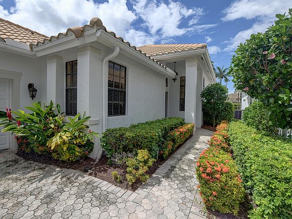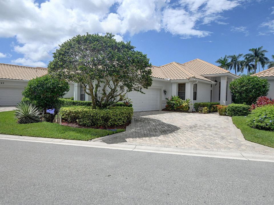 Best single-story, 3 bedroom, 2.5 bathroom layout in Oak Run of Broken Sound Country Club. Walk into a gracious living room flowing into a separate dining area - perfect for entertaining and family gatherings. Great windows and sliders bring in tremendous light. Kitchen offers beautiful traditional cabinetry and great storage with a large eat-in area surrounded by floor to ceiling sliders overlooking a private, serene back patio with a large fixed awning - wonderful for outdoor dining.Primary suite is oversized with built-ins for extra storage and features abundant light with outdoor access. Primary bath is large with an updated vanity and shower, and a spacious walk-in closet. The additional 2 bedrooms are located across the home - perfect for guest privacy. The second bedroom has an ensuite bath. Third bedroom has double private french doors and currently serves as a perfect combo of office, den and guest bedroom created by well thought out built-ins with a Murphy bed. Present owner loves to garden but if you prefer to dip in a pool, there is room for one. Large 2-car garage with garage door installed 2015. Hot water heater installed 2023. AC installed 2020. Roof installed 2007.