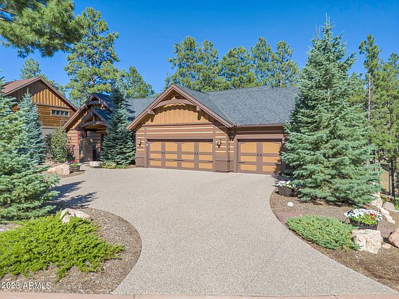 The lower level includes two additional en-suite bedrooms with private baths, a custom wet bar with beverage center, and another family room that leads out to the spacious back patio. The patio is slightly fenced in and also offers an additional seating area with easy access right to The Flagstaff Urban Trails System. This home sits on a large homesite and is elegantly landscaped offering sufficient privacy allowing you to be immediately enjoying the cool Flagstaff summers.