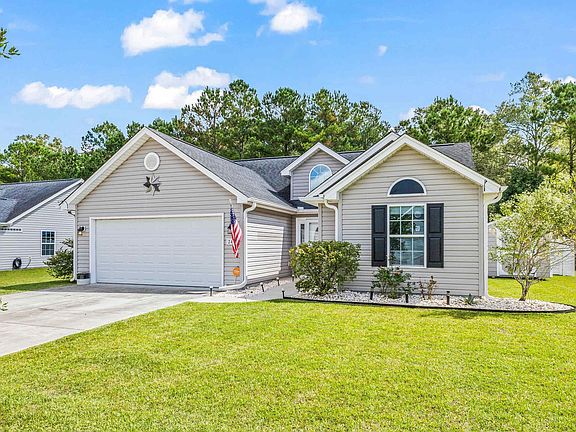 Welcome to this charming three-bedroom, two-bath, single-family home in the desirable Jordan Estates community! Situated on a spacious .2-acre lot, this well-maintained property boasts numerous upgrades that make it stand out. Discover an inviting floor plan featuring vaulted ceilings, luxurious LVP flooring, and a cozy breakfast nook. The modern kitchen has stainless steel appliances, sleek granite countertops, and plenty of cabinetry for storage, with under-counter lighting for your convenience. Enjoy a favorable cross breeze, keeping you comfortable during the warmer months. With fresh air flowing through, you'll enjoy a refreshing environment without air conditioning. Perfect for those seeking an eco-friendly and cost-effective way to maintain a pleasant indoor climate, this thoughtful home design allows you to take full advantage of the outdoors while keeping your home cool and airy. Enjoy privacy in your fenced backyard, complete with a newly added patio—perfect for entertaining or relaxing under the Carolina sky. The exterior also features landscape enhancements, including beautiful palm trees and river rock accents. The unique insulated two-car garage features a screened door, allowing for peaceful relaxing during the milder months. Love the beach? This home is less than a half hour from the Grand Strand beaches! Don't miss out on this rare opportunity to own a move-in-ready home minutes from Historic Downtown Conway.