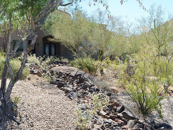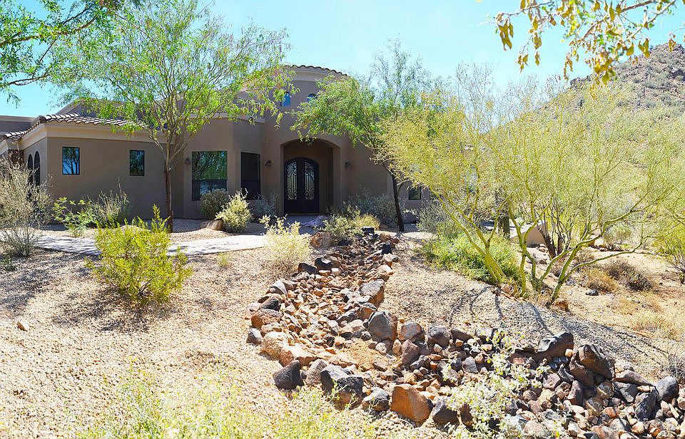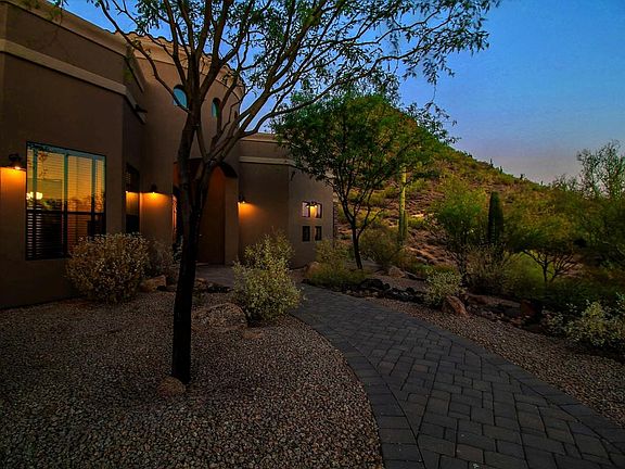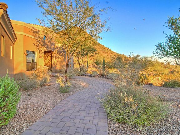 Nestled next to a mountain w/city lights views on 1.62 acres. It does not get any better than this! Great room concept w/wall to wall sliding Arcadia Doors brings the outside in. Made for entertaining. Gourmet kitchen w/super high end appliances. Split master bedroom w/separate copper tub/shower, w/copper sinks. Separate two bedroom wing w/bath. Split fourth bedroom suite perfect for guests/in-laws. Covered patio w/grilling area, fire pit wall, pebble sheen pool w/ two waterfalls. Imagine sitting in your backyard with a true mountain next door, AHH PARADISE! Solar system is owned! Traventine/Plank wood tile throughout. Master w/hidden room. Community pool, spa, tennis, trails, kid's playground, basketball court, volleyball. True luxury living! Upgrade list under documents