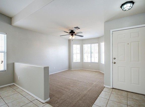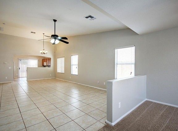 MOVE-IN READY! NEW paint - NEW carpet - NEW 16 inch tile throughout traffic areas - Open, great room floorplan - Formal living room with bay window - Spacious kitchen with smooth cooktop range, built-in microwave, refrigerator and pantry - Large master suite with walk-in closet and full bath - Vaulted ceilings - Upgraded ceiling fans throughout - Covered patio with misters and extended pavered patio - Premium lot next to a greenbelt - North/south exposure and more!