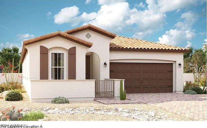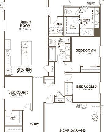 The Sapphire home boasts a versatile single-level layout. You'll appreciate the open-concept kitchen with a center island, overlooking a dining area and the great room. Enjoy outdoor living with a covered patio off the great room, featuring sophisticated center-meet sliding doors. A lavish primary suite includes a private bath and two walk-in closets, with a convenient laundry room nearby. Four secondary bedrooms and a 2-car garage complete the home.