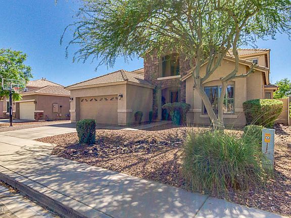 Enjoy this privately gated community, with greenbelts, plenty of walking paths, splash pad, playground for a growing family, and the surroundings of gorgeous mountain views. This beautiful 3409 sq ft home has quite the list of upgrades starting with a paver driveway leading into the RV gate, water-jetted slide, grotto with waterfall feature, artificial grass, and pergola. Step in through the front double doors to find a stated entry way, 4 bedrooms, 3 bathrooms, family room, dining room, butler's pantry, stainless steel appliances, and a 3 car garage with a custom storage rack. Home has too many other goodies to list including a number of smart-home features, and two new A/C Units. Great home for entertaining. Don't miss out on scheduling a showing today.
