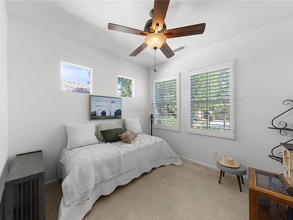 Welcome to Trilogy at Glen Ivy, Southern California’s ultimate 55+ active Golf Course Community, perfectly tucked against the stunning Cleveland National Forest! This FULLY FURNISHED charming 2-bedroom, 2-bath, 1,290-square-foot home sits right across the street from the Golf course is a real gem with its great curb appeal and upgrades galore. Inside, the soaring nine-foot ceilings give it a spacious, airy feel. The large spacious primary bedroom, with a stylishly tiled attached bathroom, a step-in shower, and a convenient walk-in closet. You’ll love waking up to the private double glass doors that open up to your lush, pet-friendly backyard. Out back, the back yard is perfect for your furry friends, and the covered patio—with its built-in ceiling fan and lighting—makes it a great spot for relaxing or entertaining. Living in Trilogy means you’ll have access to amazing amenities like tennis, pickleball, and bocce ball courts, both indoor and outdoor pools and spas, an air-conditioned indoor walking track, and a well-equipped gym. The Pacific Crest Lodge offers card, craft, and billiard rooms, plus a cozy lounge and computer area. And for golf lovers, the Glen Ivy Golf Course weaves its way through the community, complete with a night-lit driving range, pro shop, and food grill. Ready to join the fun? Come see for yourself! COMES WITH FURNITURE!