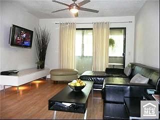 Absolutely gorgeous, fully furnished spacious one bedroom condo upstairs unit.Pergo flooring, new appliances including the refrigerator,washer and dryer, gorgeous furnitures.Living room and bedroom furnitures and Wall mounted TV is included in the lease. Located in a wonderful gated community with access to the pool and spa. Rent also includes one covered carport.