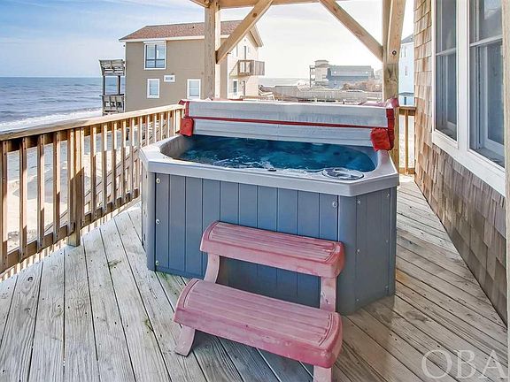 Spectacular ocean views from the living level, bedroom level & comfortably furnished sundecks of this well maintained ocean front home with easy access to the beach! Located in the heart of Rodanthe, HEADS ABOVE is a short stroll to the Rodanthe Fishing Pier! Close to shopping of all sorts, a wide variety of restaurants, rock climbing, arcade activity, water sports galore & boat / jet ski rentals! For indoor entertainment, gather in the first floor game room with shuffleboard, comfortable seating in front of the large flat screen TV and a wet bar with full size refrigerator, perfect for stowing beach beverages. Chill out in the super peaceful atmosphere on one of the ocean facing decks staring off into the endless water views with your morning coffee or cool afternoon beverage. Enjoy a soak in the bubbly hot tub with stunning ocean views. Two master suites and 2 additional cozy/comfy bedrooms. Fun family spaces to gather throughout the nicely flowing floorplan.