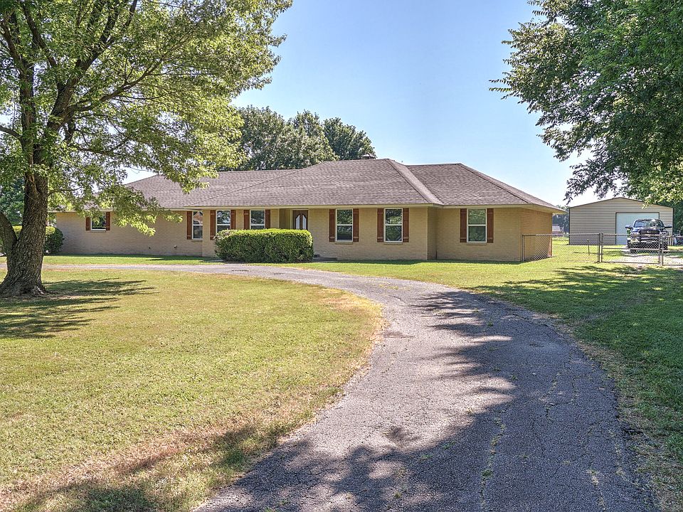 Exceptional location access area communities in a SNAP - BONUS Verdigris Schools! A perfect plan for gatherings - Kitchens natural light shows off plenty of prep space island farm sink. Dining area accommodates huge table buffet dish cabinets. Office/game rm just off vaulted living w/cozy fp, utility rm has window & plenty work/storage space. All bdrs are good sized lrg. primary closet. 12x24 she shed, h/a area for dog kennel. 30x40 steal shop 2 rollup dr 200 AMP on concrete. Storm shelter