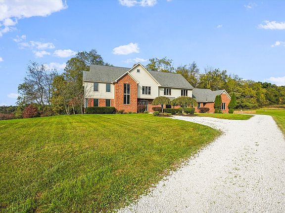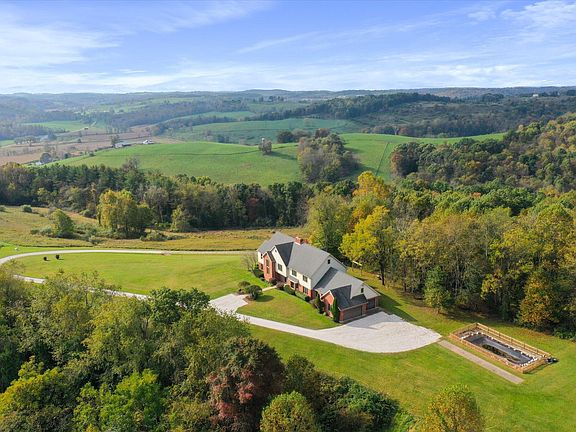 BREATHTAKING describes this custom built home located on almost 100 ACRES! You get an amazing view of the country from every window! The inside features a stunning foyer with a 2 story fireplace & hardwood floors. The family room is open to the large kitchen that has plenty of storage & solid wood cabinetry. There is a library off of the foyer, formal living room & dining room. There are 2 bedrooms on the main level as well that could also serve as a mother-in-law suite, office or kids play room. Upstairs features 4 large bedrooms, 3 full baths & a bonus room. The master bedroom is large & has 2 walk-in closets. There is a full basement just waiting to be finished & is a walkout! Outside is like a DREAM with an in-ground pool, woods perfect for hunting, riding 4 wheelers, dirt bikes, etc.