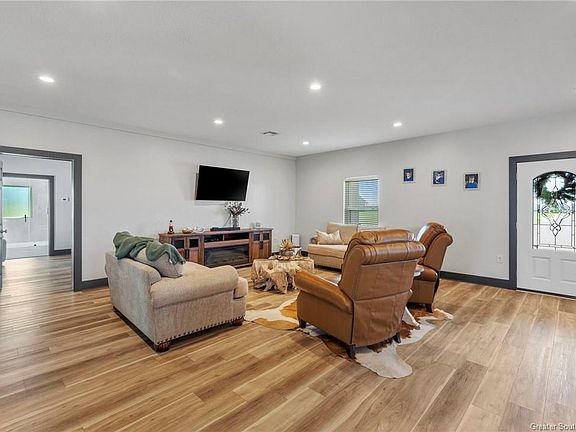 Welcome to your dream country estate! Nestled on nearly 15 acres of pristine land, this stunning brick home, built in 2023, offers a perfect blend of luxury, comfort, and functionality. As you step inside, you'll be greeted by an open concept floor plan that seamlessly connects the living and kitchen areas, creating an inviting space for both relaxation and entertainment. The kitchen boasts stainless steel appliances and beautiful countertops. The primary suite is a true oasis, featuring a spacious layout with a luxurious walk-in tile shower, a relaxing soaking tub, and an incredibly large walk-in closet, providing ample storage space for all your needs. Step outside into your own private paradiseI The fenced backyard offers a big, vaulted ceiling back patio, perfect for hosting gatherings with friends and family. Take a dip in the gunite, in-ground saltwater pool, or simply soak in the serene surroundings of the expansive property. For the equestrian enthusiast, this property is a dream come true. A gorgeous pipe entryway with an electric gate opener welcomes you to the estate, leading to a very nice barn with 2 lean-to's and great storage and stalls. The barn features a tack room, storage room, tool room, and hay room. Additionally, there's a rodeo arena built with pipe fence, ideal for practicing and enjoying various equestrian activities. The property is cross-fenced and ready for animals, with a new pond adding to the picturesque landscape. Conveniently located in Flood Zone X, which typically does not require flood insurance, this property offers peace of mind and endless opportunities to enjoy the beauty of country living. There is a large carport with plenty of parking available as well. Don't miss out on the chance to own this absolutely stunning piece of paradise! Schedule your private tour today.
