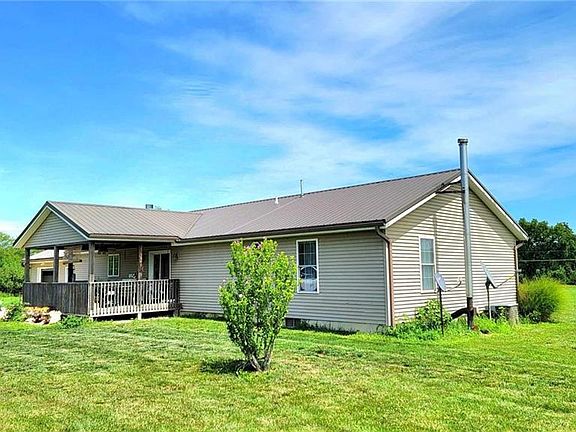 Fontana, Ks Horse Lover enthusiast dream property. This 18.9-acre farm features a modern 3 bed, 2 bath ranch with a walk-up basement. The kitchen is big and bright with backyard access. Oak custom cabinets with plentiful storage throughout. Adjacent to the kitchen is a large pantry. The south wing of the home features 3 large bedrooms and 3 baths. If you like to entertain you will love the large living room. 2 car attached garage with walkup basement access. The basement features 2 non-conforming bedrooms, 1 beautiful stone fireplace and a state-of-the-art wood heating system. The 2,000 plus red iron auto repair building is as nice as I've seen. Featuring 1 automotive car lift with 9x10x2 rollup doors. The building is fully insulated with excellent lighting and outlets throughout. 1 shop bathroom and excellent office space. An additional 2,300 modern metal building exists, and the east portion of the building is a machine shed with open dirt floor and the west portion is fully enclosed with concrete floor and lockable. 1 8x14 storage shed, beautiful garden spot and more. Pastures are a mix of cool season fescue, clover pasture fenced with portable electric fencing. Current owner has hayed the cast field and grazed the west portion. This property is located a football field off the road. *Sellers will give a $5,000 allowance for carpet