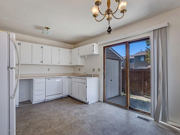 Ready to move in! Enter into an open living room, hallway where you will find an added storage closet and laundry room with storage, transitioning into the Kitchen and Dining Space. From the kitchen you have direct access to the privacy fenced patio and your storage shed, from there you can access the HOA yard. Upstairs are two spacious bedrooms, one with two closets for plenty of clothes and a full bathroom. Seller has recently carried fresh paint and carpet throughout. End unit townhome with extended yard! Sorry, HOA does not allow Owners or Renters to have pets.
