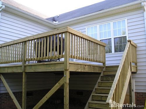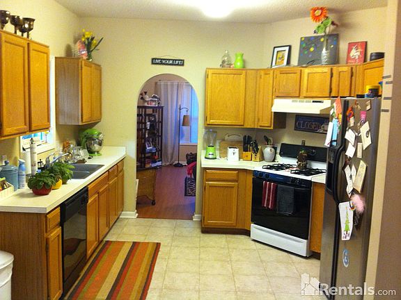 This 3 bedroom, 2 bath house is perfect for a small family or college students. Convenient to I-40, downtown Raleigh, Garner, and Cary. Less than 10 minutes from NCSU! Ceiling fans & cable connections in each bedroom. All major appliances (microwave, dishwasher, washer/dryer, refrigerator, stove) included. Double sinks in both bathrooms. Laminate hardwood floors throughout. Spacious 9ft ceilings throughout, vaulted living room and master bedroom. Large master suite. Walk in closets. 2 car garage. Large deck. Private backyard. Community pool. No pets.