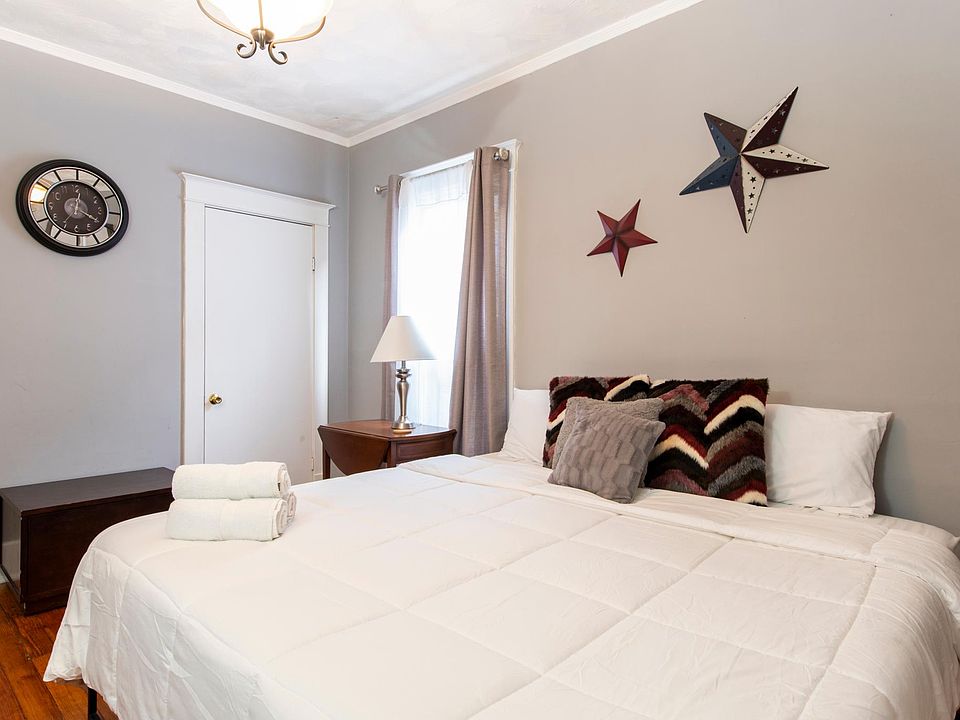 This inspiring 2 bedroom apartment features 1 King bed and 1 queen bed with a leather sofa. The living room beautifully furnished with 48' smart tv to catch up on all your favorite shows. The small but well equipped kitchen is just to the side of the living space with a full size fridge, electric stove, microwave, coffee maker, pots and pans for cooking. Also features a cute dining room table for great discussions and to catch up on any work. One full bathroom stocked with soaps, shampoo, conditioner, and towels for your convenience. Water included, wifi included for an additional $50.00 month. Tenant Pays LGE. Apartment is full furnished. PETS Considered.