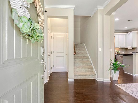 End-Unit Townhome in Pemberley! Recent updates include a New Roof (Oct 2022), HVAC (June 2021), and Smart Thermostats (Ecobee). Hardwood floors and Crown Molding on the Main Level. Kitchen includes Stainless Appliances, Granite Counters, Bar Seating, Crowned Cabinets, and a Bright Dining Area. The open concept Family Room features a Gas Fireplace. Main Floor Guest Bedroom and Bath. Journey upstairs to the Owners Suite that includes a Walk-in Closet, Double Vanity, Garden Tub, and Walk-in Shower. Completing the 2nd level is a spacious Loft, Laundry, Two Additional Bedrooms, and Hall Bath. Relax after a long day on the Patio that includes a Privacy Fence. There's also an attached Garage with a Wifi Enabled Garage Door Opener and Covered Front Porch with a Ring Doorbell and Wireless Smart Lock. HOA handles Landscaping (low-maintenance living!). Community amenities include a Pool and Playground. Close to Area Parks & Greenways, Ting Park, Kraft YMCA, Holly Springs Towne Center, downtown Apex, downtown Holly Springs, and easy access to Hwy 55 and The Triangle Expressway!
