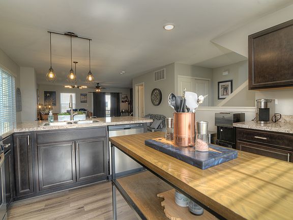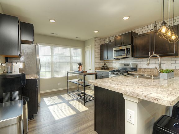 This highly sought after Lincoln model overlooks a beautiful pond and shows just like a model. This stunning home is 5 years new and is loaded with updates - vinyl plank flooring throughout the main level of the home, updated light fixtures and much more. The kitchen boasts a beautiful subway tile backsplash and gorgeous espresso cabinets with brushed nickel hardware. The main floor powder room offers an updated lighting and vanity. Upstairs the 3 spacious bedrooms offer comfort, with the primary suite featuring an attached full bath and a sprawling walk-in closet equipped with a custom organizer system. The cozy basement boasts a spacious family room with direct access to the attached 2 car garage. Why buy new when you can purchase this home that shows just like a model?! Welcome home to Bella Drive.