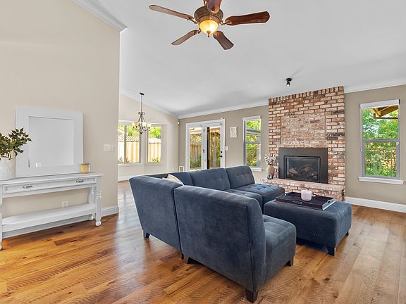 This stunning home in the coveted Candlewood Subdivision offers exceptional curb appeal and a serene ambiance. The spacious lot backs onto beautiful green space, providing a peaceful retreat. Inside, the kitchen and bathrooms feature granite countertops and upgraded cabinetry. Enjoy the elegance of upgraded LVP flooring, a cozy fireplace, and crown molding throughout. The outdoor area is perfect for entertaining with a built-in gazebo, patio, and expansive lawn. Conveniently located near all amenities, this home truly has it all and more.