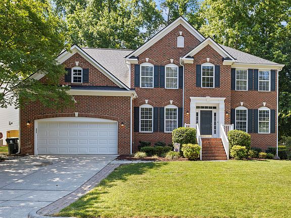 Stately brick front home with fenced yard, screened porch with stone fireplace that has gas logs, and there is also a deck! 1st floor office with French doors, formal living room open to the dining room with trey ceiling, crown, chair rail and wainscoting. Refinished hardwood floors on main level and vinyl in the laundry room. Remodeled kitchen with custom cabinets that have soft-close doors and drawers and pull-out shelves. Granite counters, tile backsplash, under cab lights, center island, KitchenAid range, and Bosh dishwasher. Butler's pantry/bar with wine rack and area to add a beverage refrigerator. Oversized family room with wood burning fireplace and is opened to the kitchen. Remodeled baths with custom cabinets that have soft-close doors and drawers, granite counter tops, tiled showers and floors. 4 bedrooms up with ceiling fans, a bonus and walk-in attic. New carpeting. Owners' suite with trey ceiling, remodeled bath with custom cabinets, granite, heated tiles and large walk-in closet. Sealed crawl space with dehumidifier. Community clubhouse, pool, playground 2 ponds and greenway. Close to shopping and restaurants, Hwy 55 and I540.