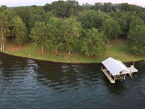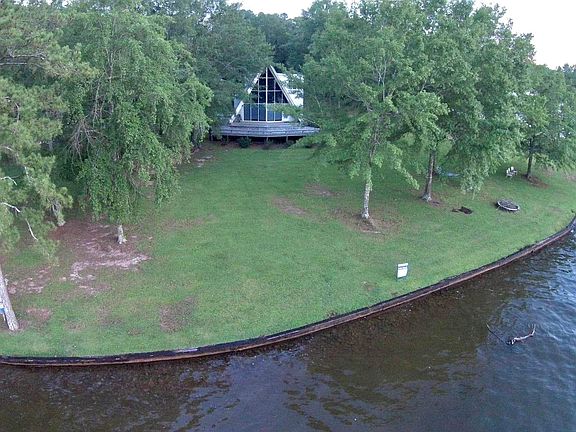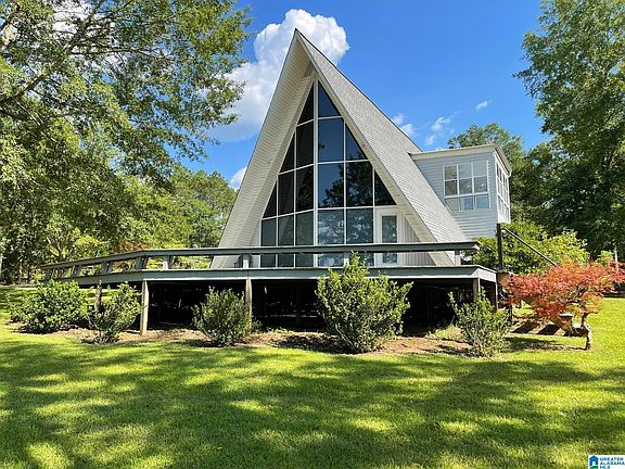 Here is your chance to own one of the best flat, point lots on Lake Wedowee! If you are familiar with the lake, you know this unique property! This 3 bedroom 2 bath A-frame sits on 1.3 acres and boasts 448 ft of shoreline. Inside, you will find panoramic views of the water throughout. The living room offers vaulted ceilings and floor to ceiling windows with an amazing view. There are two bedrooms on the main level and a remodeled full bath. Upstairs is a 3rd bedroom and full bath along with a sunroom that could easily be turned into a 4th bedroom, playroom area for kids, or office. Updates done in 2018 include new flooring throughout, new interior paint ,new HVAC, and new dock decking and railing. Seawall and covered dock in place with a high tide boat lift. Next, you will find steps leading into the lake for easy access! The circular driveway has a concrete pad with plumbing and electrical in place ready for a future garage making this home truly have it all!