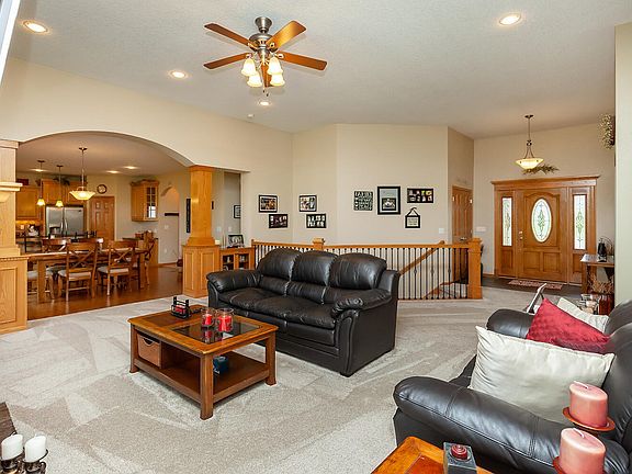 Peaceful Country Living! Enjoy the wide open spaces as you drive up to this beautiful once acre oasis in the private Evergreen Development. Lush Green yard and exquisite landscaping greet you as you drive in the driveway. You cant miss the attention to detail the sellers put into designing this one of a kind custom home! You are greeted with tons of natural light from the floor to ceiling windows as you enter the living room of the home. On one side you enter the owners suite complete with his and hers closets, expansive double vanity in the spacious private bath, lovely trey ceilings, and a beautiful bay window accent this space with exquisite detail. Enter the other side of the great room through a custom curved archway with craftsman style built ins to a completely custom Hickory kitchen! Tons of cabinet storage and a corner pantry for amazing organization options. The island easily seats 4 and offers tons of counter space for all your entertaining needs! Just off the kitchen before you enter the garage is a custom drop zone with built in locker space, a half bath, and a huge laundry room with additional storage and tons of space and another main floor bedroom.Follow the open staircase to the basement into a spacious family room large enough for all your entertaining needs. Two additional bedrooms, two non-conforming spaces, full bath and an extra large storage room make-up this just under 2000 square feet of additional space! Call for your private showing today!